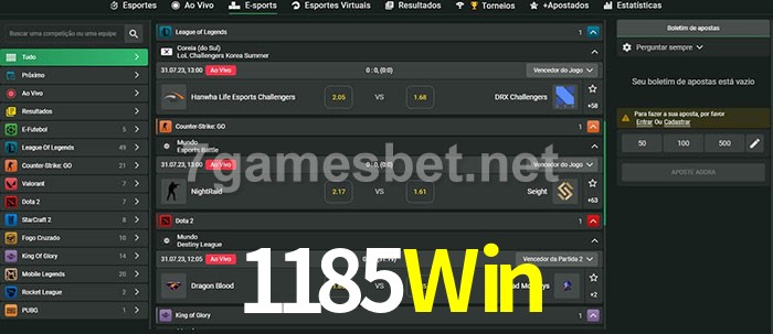 O 1185Win oferece uma grande seleção de opções de apostas em e-sports com probabilidades competitivas